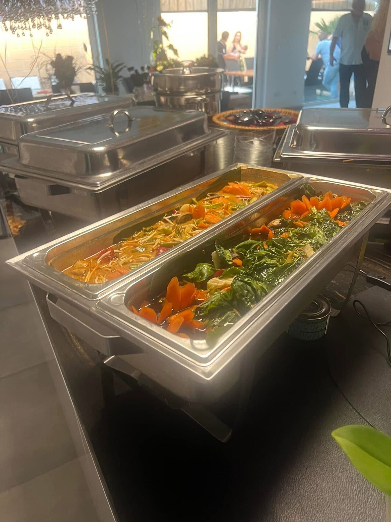 Unsere Küche achtet auf eine vegane und vegetarische Zubereitung der Speisen und bietet dennoch eine reichhaltige Vielfalt. Wer auf glutenfreie Ernährung zählt, findet bei uns auf jeden Fall auch das Richtige. Sie werden überrascht sein, wie umfangreich die Möglichkeiten sind, sich mit Köstlichkeiten zu verwöhnen und trotzdem dabei die Gesundheit immer im Blick zu behalten. Parken Sie ganz bequem auf unseren kostenlosen Parkplätzen. Unser Catering können Sie barrierefrei erreichen. Bei uns können Sie auch gerne Ihre Tiere mitnehmen. Bei uns können Sie bar oder mit PayPal und kontaktlosem Bezahlen zahlen. Sie planen eine Hochzeit? Wir freuen uns, Ihnen dabei behilflich sein zu dürfen und das ganz besondere Event in Ihrem Leben einmalig zu gestalten.